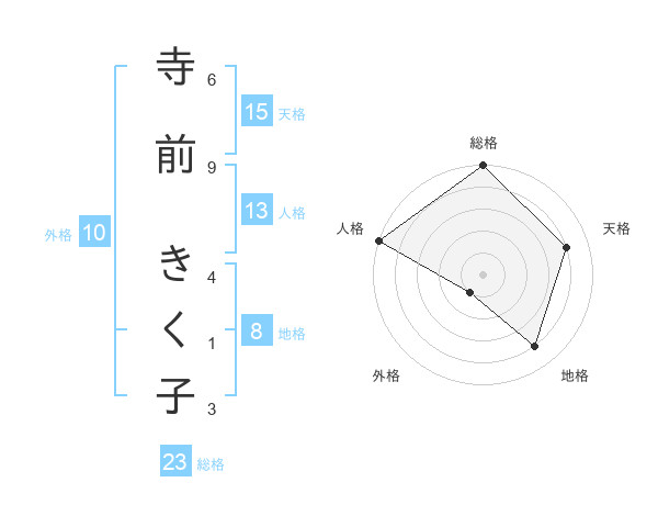 寺前 きく子さんを姓名の画数から五運を鑑定