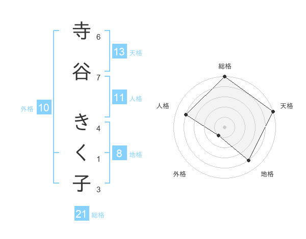 寺谷 きく子さんの天格は13画の5点!