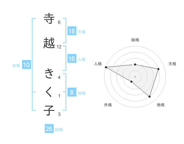 寺越 きく子さんを姓名の画数から五運を鑑定