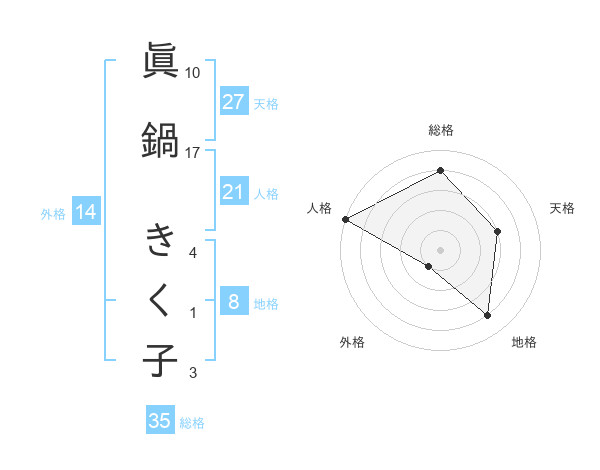 眞鍋 きく子さんを姓名の画数から五運を鑑定