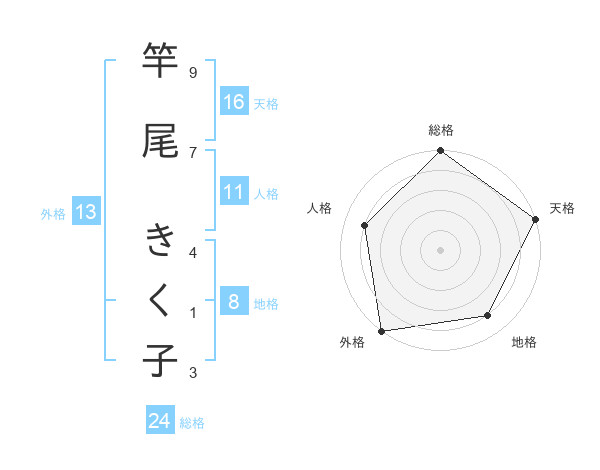 竿尾 きく子さんを姓名の画数から五運を鑑定