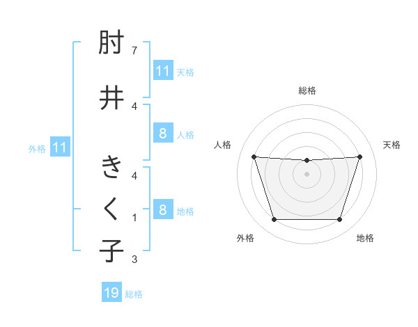 肘井 きく子さんの天格は11画の4点!