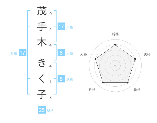 茂手木 きく子さんを姓名の画数から五運を鑑定