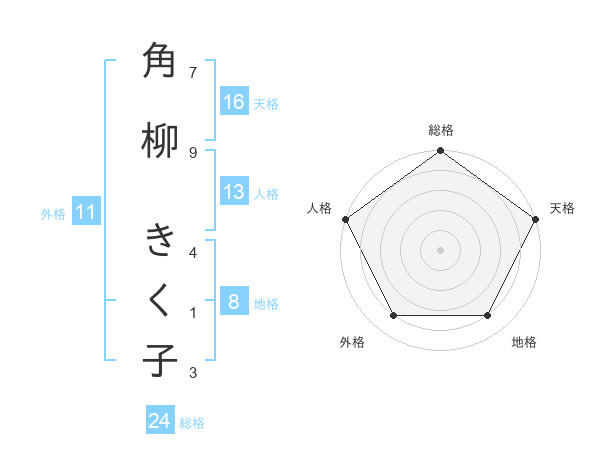 角柳 きく子さんを姓名の画数から五運を鑑定