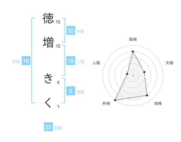 徳増 きくさんの外格は16画の5点!