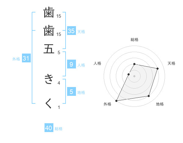 歯歯五 きくさんの天格は35画の4点!