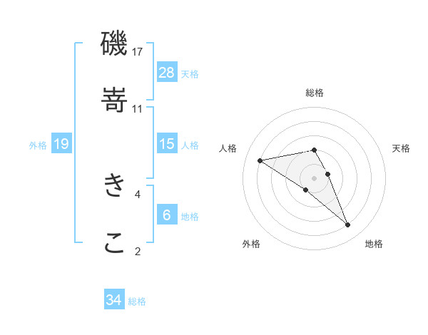 磯嵜 きこさんを姓名の画数から五運を鑑定