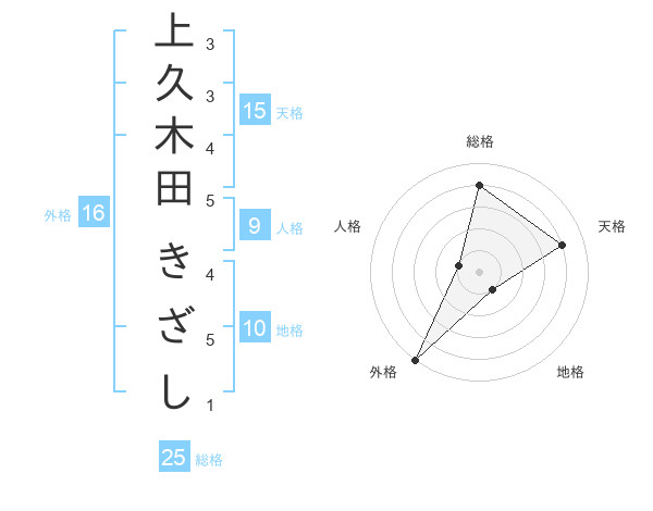 上久木田 きざしさんの総格は25画の4点!