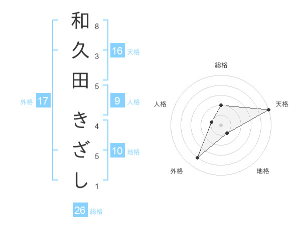 和久田 きざしさんを姓名の画数から五運を鑑定