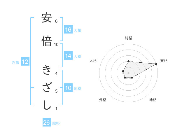 安倍 きざしさんを姓名の画数から五運を鑑定