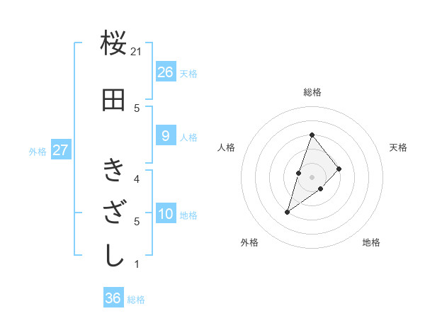 桜田 きざしさんを姓名の画数から五運を鑑定