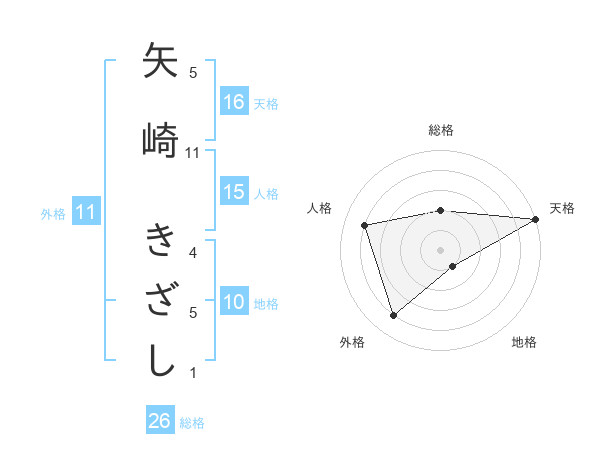 矢崎 きざしさんを姓名の画数から五運を鑑定
