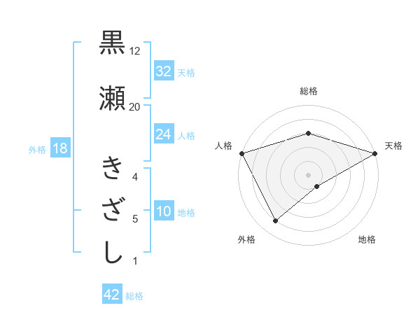 黒瀬 きざしさんを姓名の画数から五運を鑑定