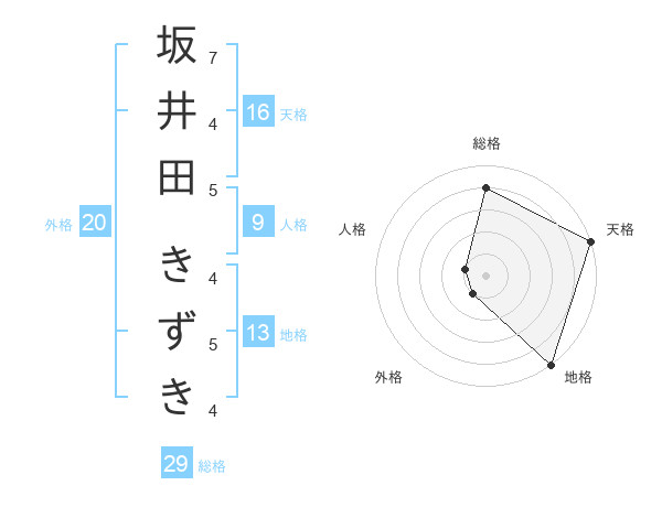 坂井田 きずきさんを姓名の画数から五運を鑑定