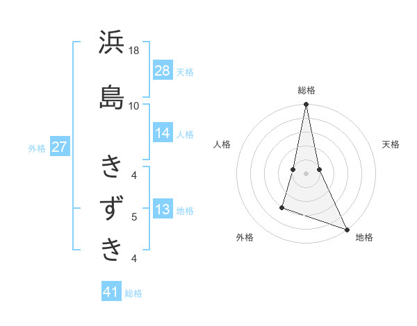 浜島 きずきさんの総格は41画の5点!