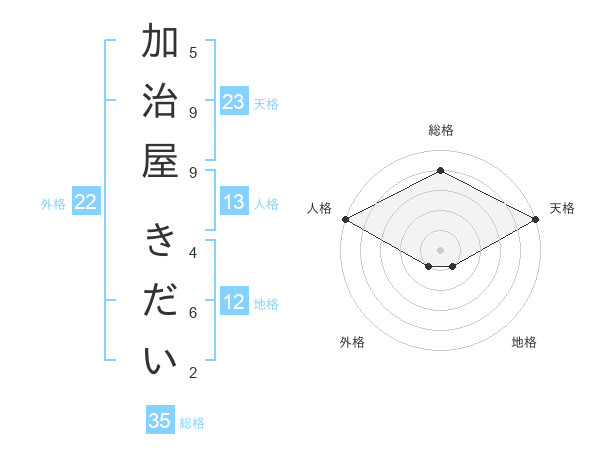 加治屋 きだいさんの天格は23画の5点