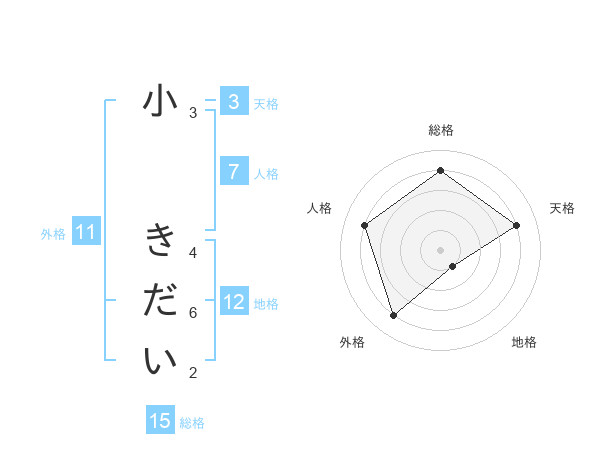 小 きだいさんの総格は15画の4点!