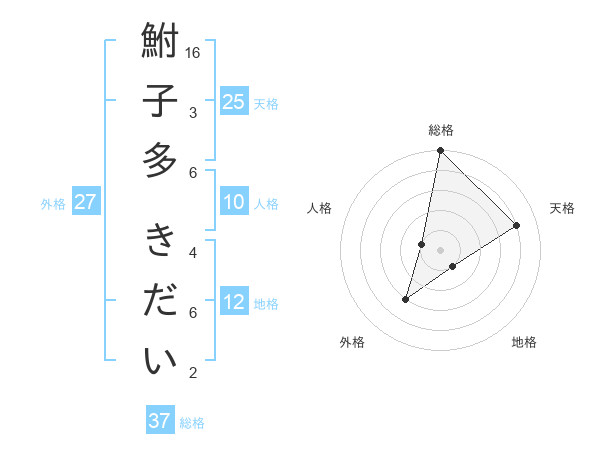 鮒子多 きだいさんを姓名の画数から五運を鑑定