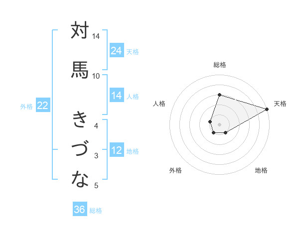 対馬 きづなさんの天格は24画の5点!