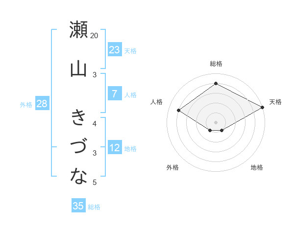 瀬山 きづなさんの天格は23画の5点!