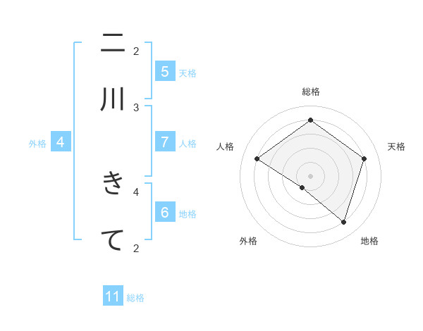 二川 きてさんの天格は5画の4点!
