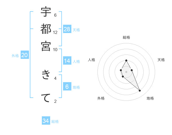宇都宮 きてさんを姓名の画数から五運を鑑定
