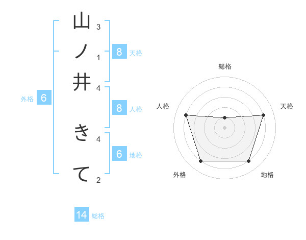 山ノ井 きてさんを姓名の画数から五運を鑑定