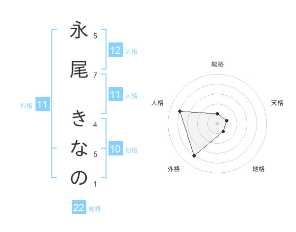 永尾 きなのさんの総格は22画の1点!