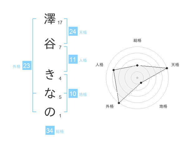 澤谷 きなのさんの天格は24画の5点!