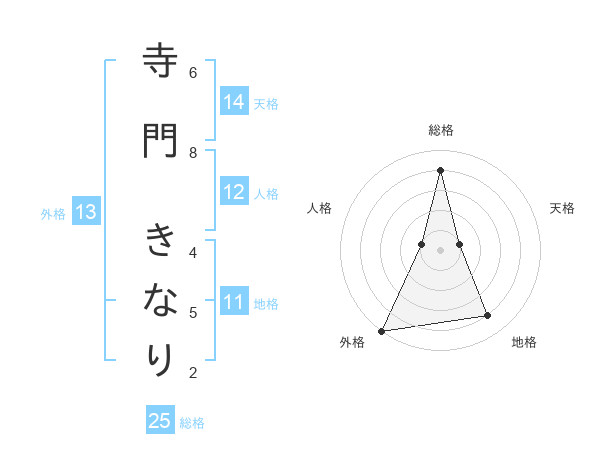 寺門 きなりさんの総格は25画の4点!