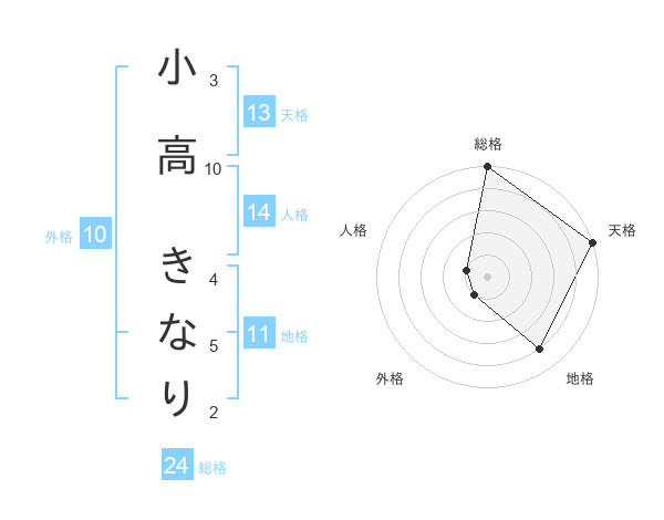 小高 きなりさんの天格は13画の5点!