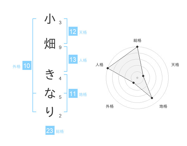 小畑 きなりさんを姓名の画数から五運を鑑定