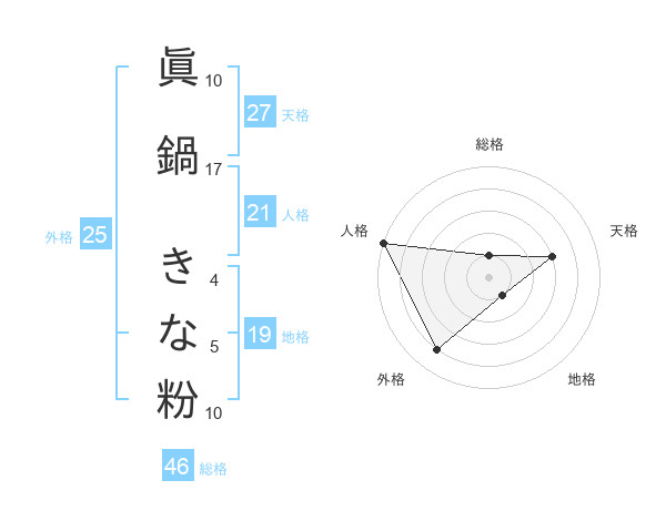 眞鍋 きな粉さんを姓名の画数から五運を鑑定