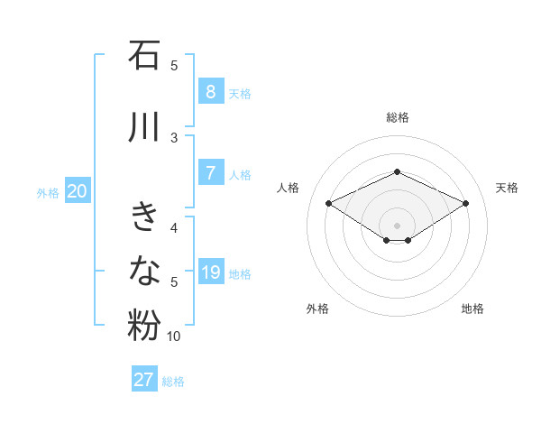 石川 きな粉さんを姓名の画数から五運を鑑定