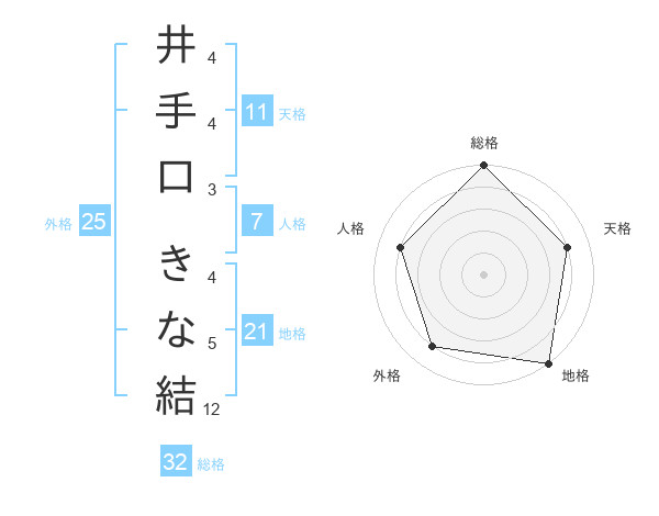 井手口 きな結さんを姓名の画数から五運を鑑定