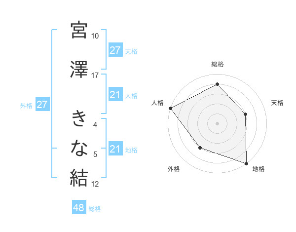 宮澤 きな結さんの天格は27画の3点!
