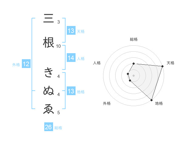 三根 きぬゑさんの地格は13画の5点!