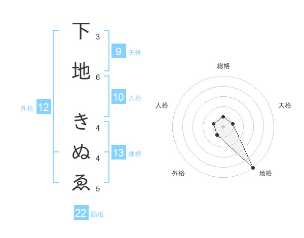 下地 きぬゑさんの地格は13画の5点!