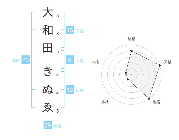 大和田 きぬゑさんを姓名の画数から五運を鑑定