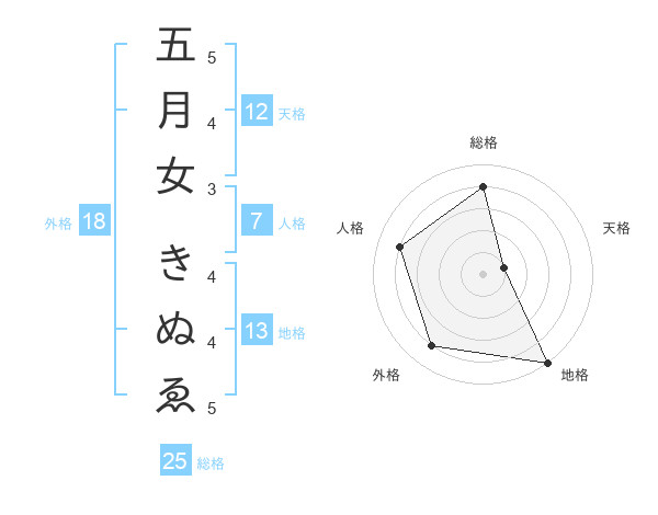 五月女 きぬゑさんの総格は25画の4点!