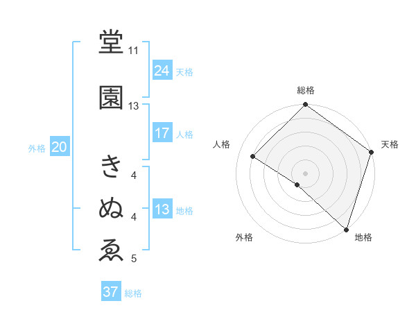 堂園 きぬゑさんの地格は13画の5点!
