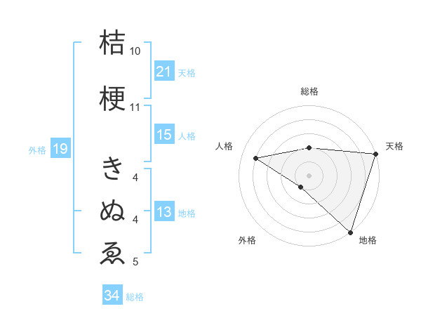 桔梗 きぬゑさんの地格は13画の5点!