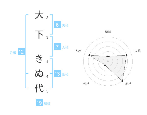大下 きぬ代さんの総格は19画の1点!