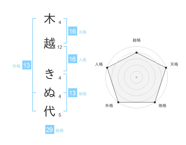 木越 きぬ代さんを姓名の画数から五運を鑑定
