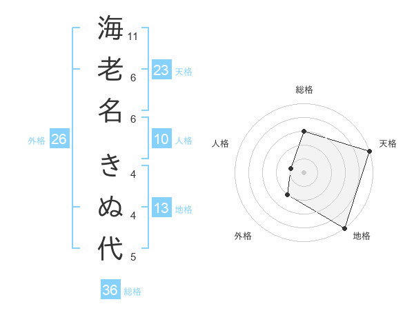 海老名 きぬ代さんの総格は36画の3点!