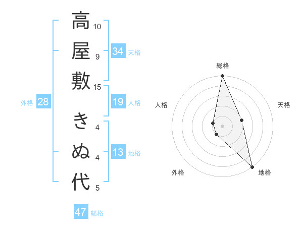 高屋敷 きぬ代さんの総格は47画の5点!