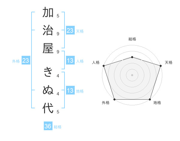加治屋 きぬ代さんを姓名の画数から五運を鑑定