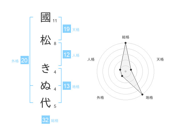 國松 きぬ代さんを姓名の画数から五運を鑑定
