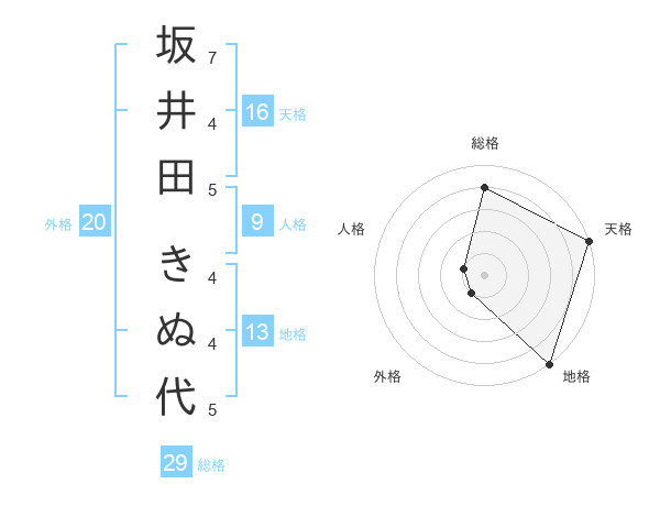 坂井田 きぬ代さんを姓名の画数から五運を鑑定