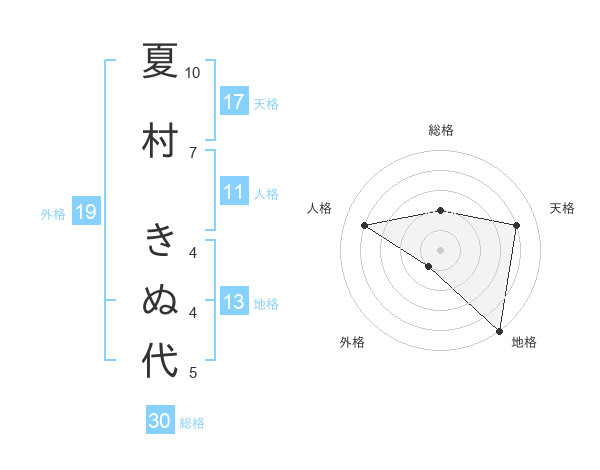 夏村 きぬ代さんを姓名の画数から五運を鑑定